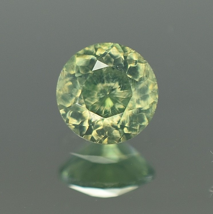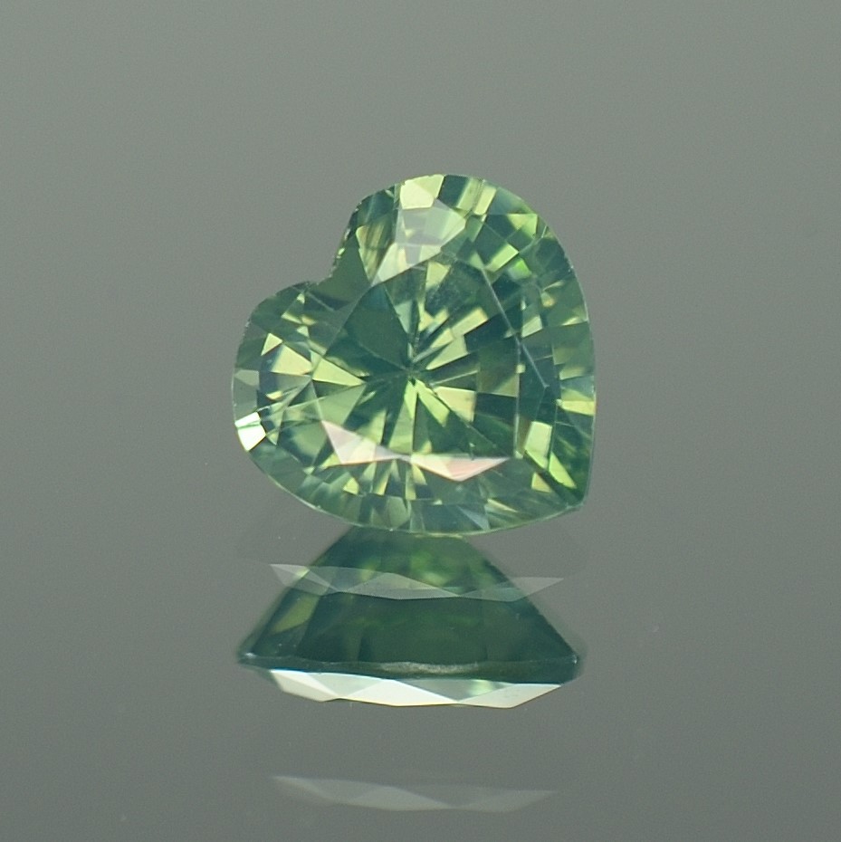 Green Zircons are considered ‘low zircons’ or ‘metamict’ Zircons and their loss of crystal structure sometimes makes them appear darker or cloudier. They are routinely heated to reduce the brownish components and improve their clarity.